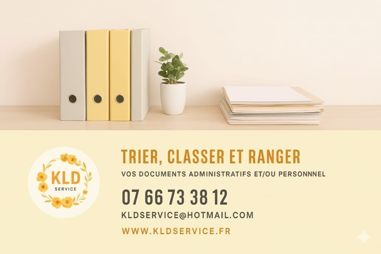 KLD est une entreprise individuelle (EI) spécialisée dans le Tri, le rangement et le classement des documents administratifs et/ou personnels. Basée à Nonancourt dans l’Eure (Normandie),